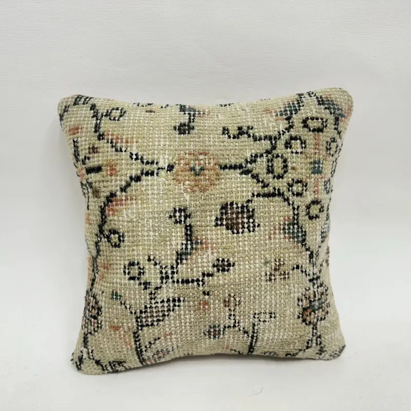 Beige-braunes Blumen-Wurfkissen, 12x12 besticktes Kissen
