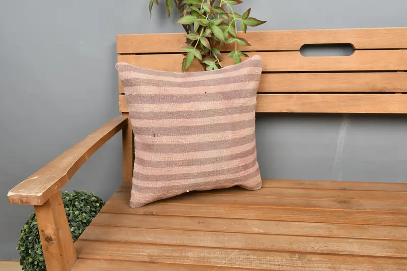 Rustikaler gestreifter Kissenbezug, handgefertigtes besticktes Wurfkissen
