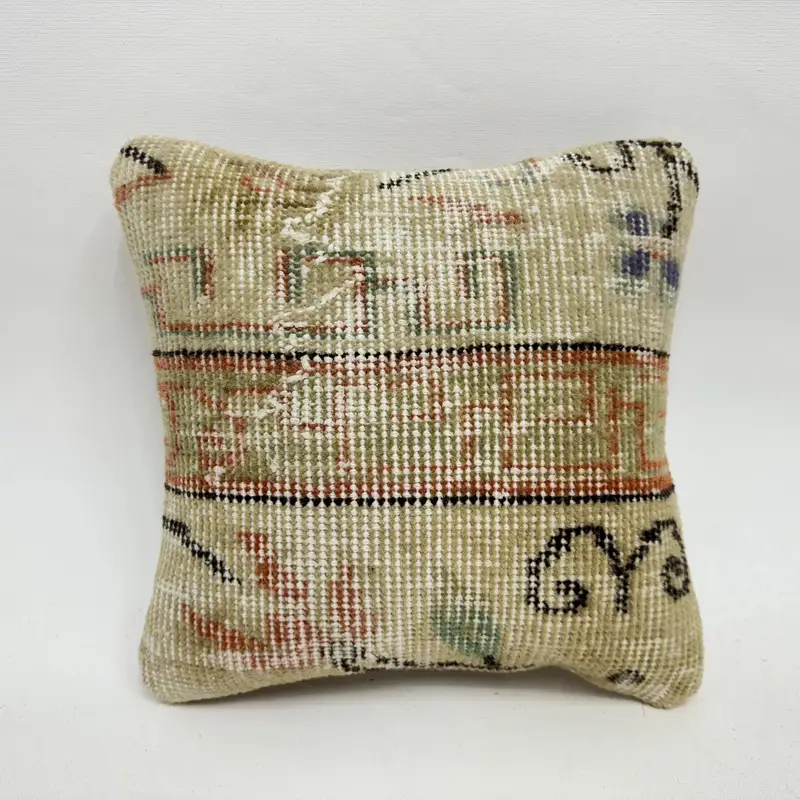 Beige & braun gestreiftes Wurfkissen, Vintage besticktes Kissen