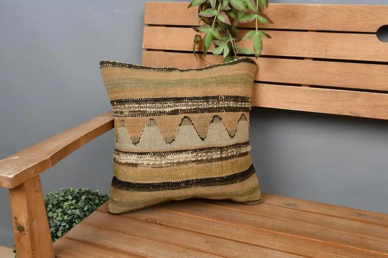 Geometrisches grünes und braunes besticktes Kissen, handgefertigtes Vintage-Wurfkissen