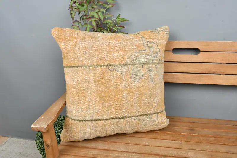 Orange & Beige Patchwork-Wurfkissen, 24x24 besticktes Kissen