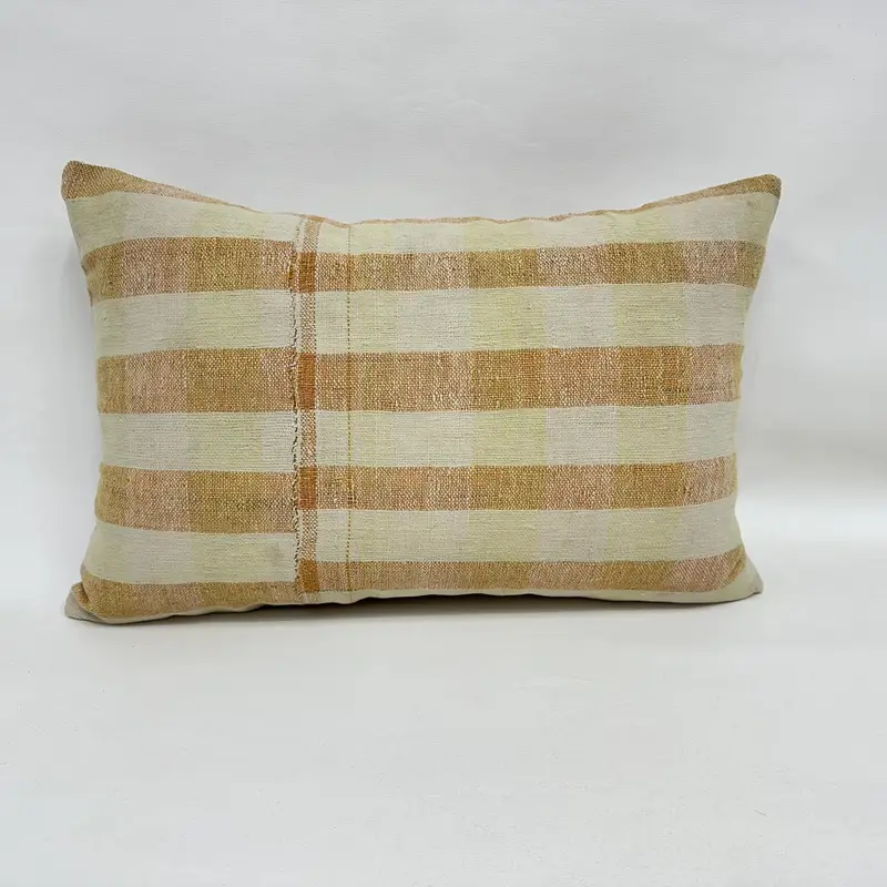 Beige & braun gestreiftes Kissen, handgefertigtes besticktes Kissen
