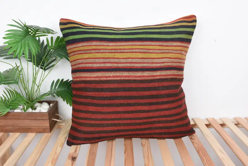 Grün-rot gestreiftes Kissen, 28x28 besticktes Wurfkissen