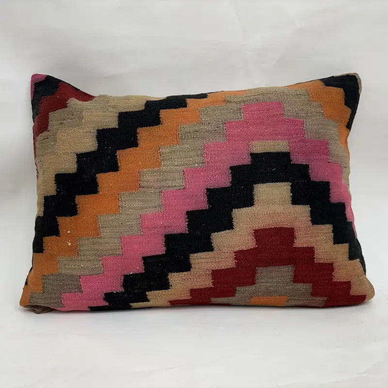Geometrisches Kissen in Orange und Rosa, handgemachtes Leinenkissen