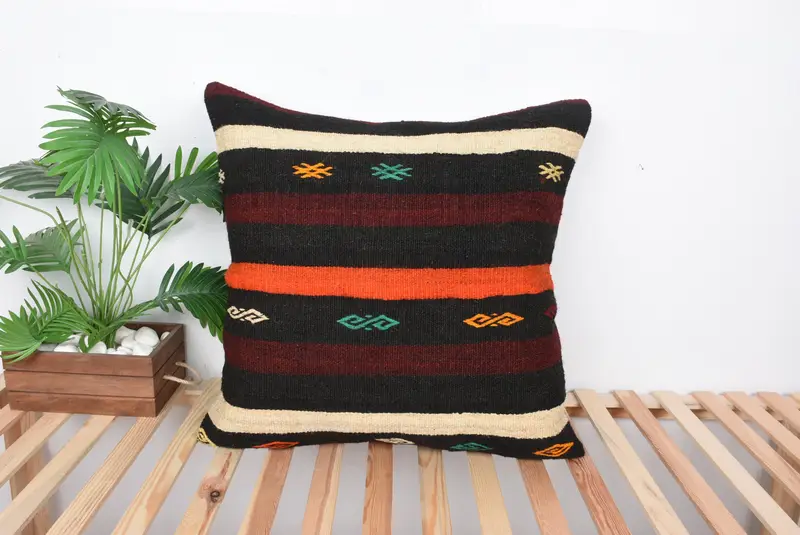 Braun & Orange besticktes Wurfkissen, handgemachtes geometrisches Kissen