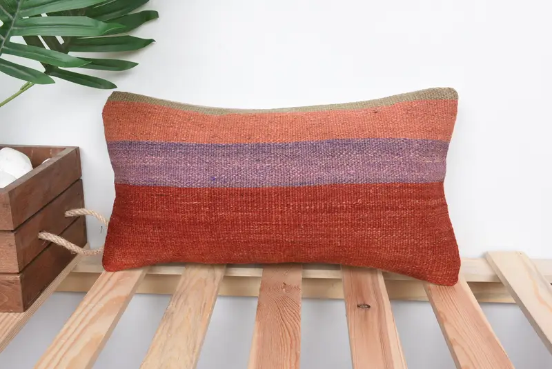 Lila und rot gestreiftes Wurfkissen, 16x8 besticktes Kissen