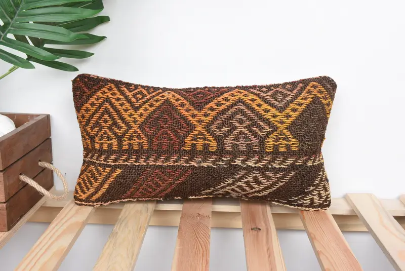 Geometrisches Kissen in Orange und Braun, rechteckiges Vintage-Kissen