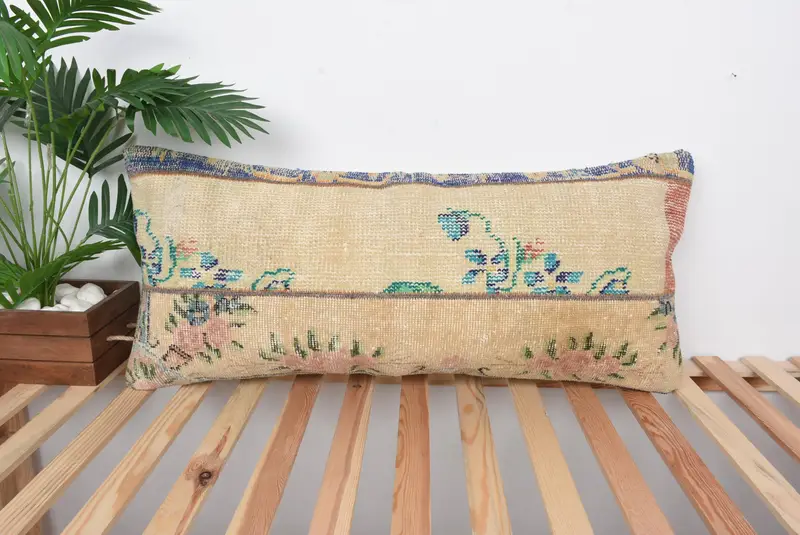 Orange & grünes Patchwork-Wurfkissen, 16x36 handgemachtes Kissen