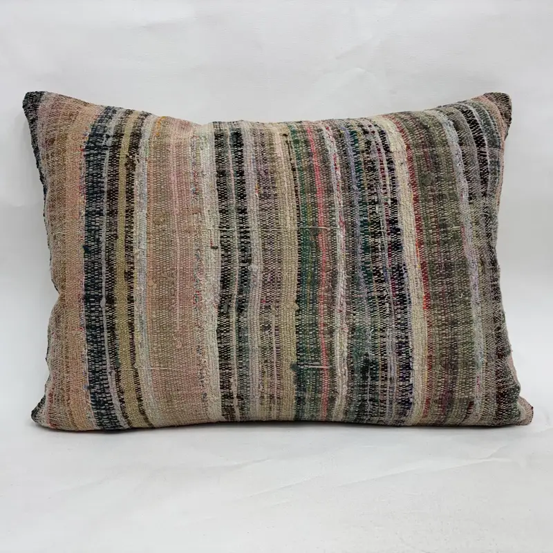 Beige & braun gestreiftes Kissen, handgefertigtes besticktes Kissen