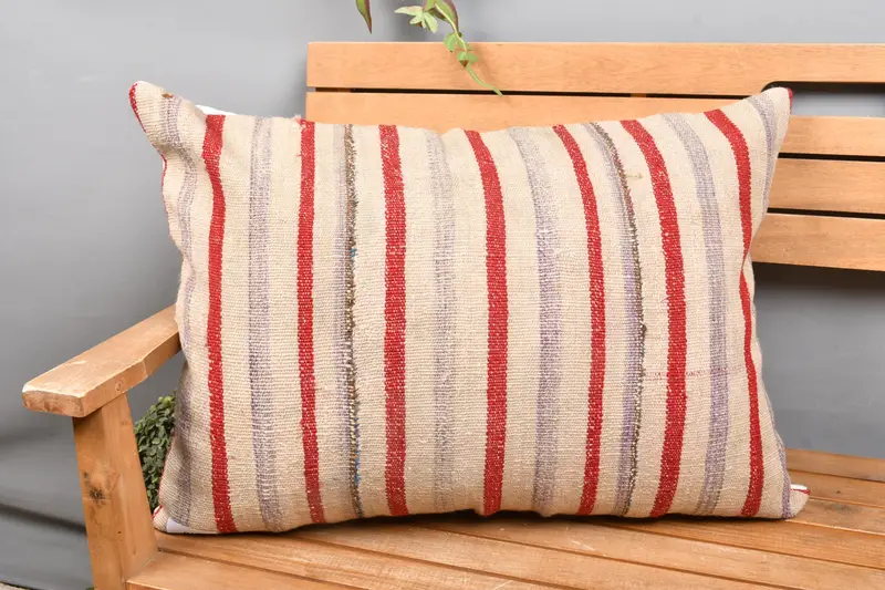Beige & rot gestreiftes Wurfkissen, handgefertigtes rechteckiges Kissen