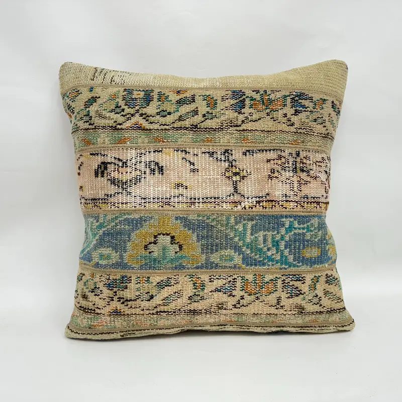 Beige & grünes Patchwork-Wurfkissen, Vintage besticktes Kissen