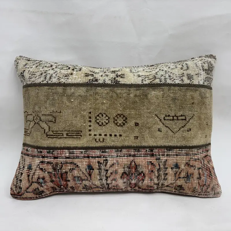 Braunes und beiges Patchwork-Wurfkissen, handgefertigtes Vintage-Dekor