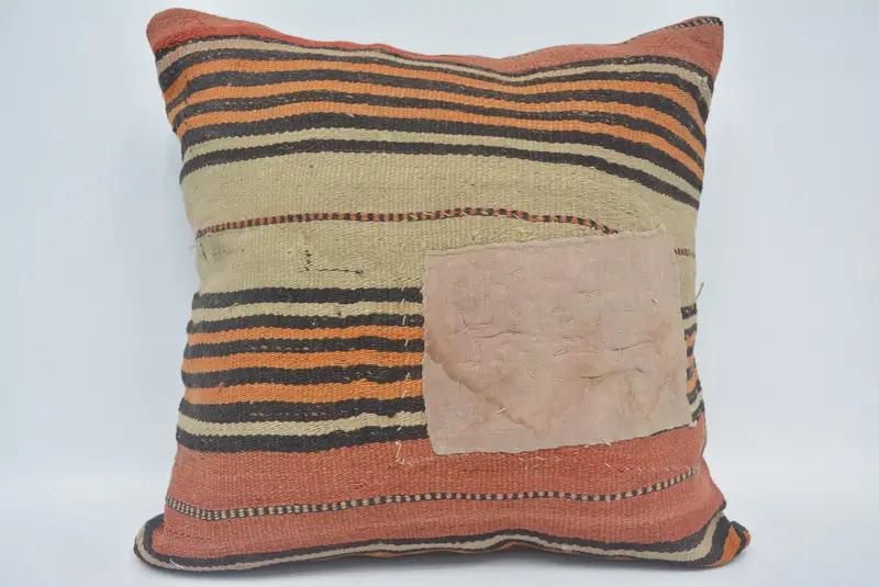 Grün-rot gestreiftes Wurfkissen, 22x22 besticktes Kissen