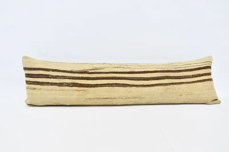 Beige und braun gestreiftes Kissen, handgemachtes Kissen aus Hanf und Wolle