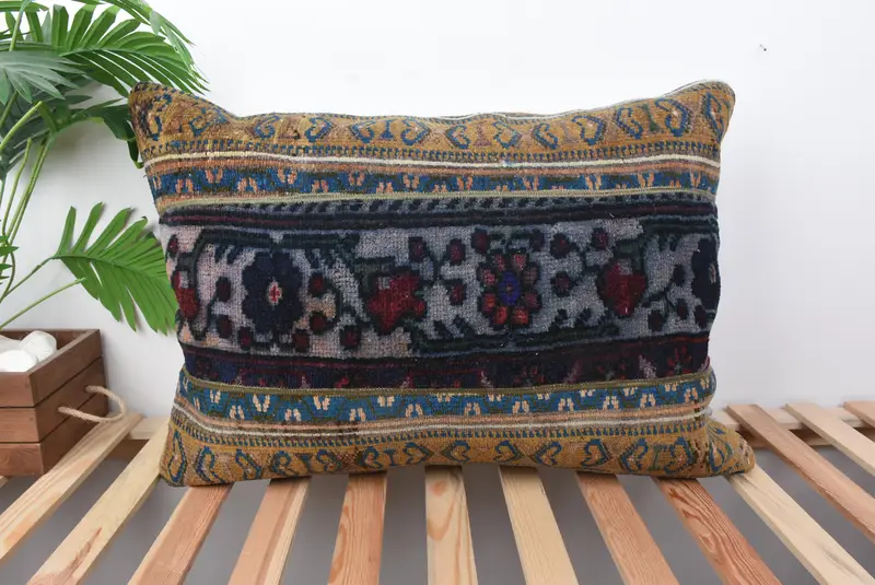 Orange & Bronze Patchwork Kissen, 20x28 handgemachtes Kissen