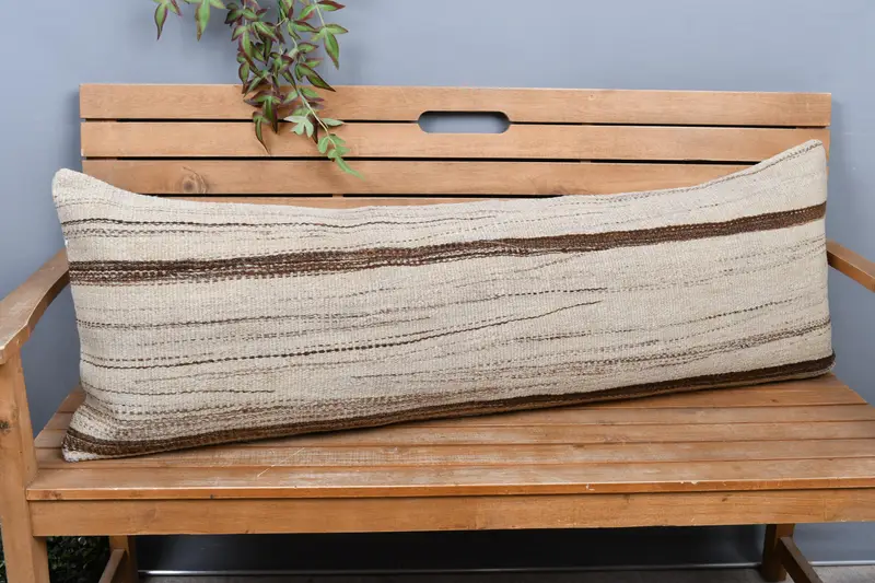 Beige und braun gestreiftes Kissen, 16x48 besticktes Wurfkissen