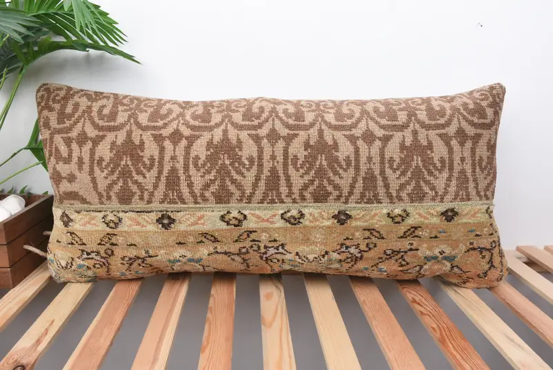 Beige & braunes Patchwork-Wurfkissen, 16x36 handgefertigtes rechteckiges Kissen