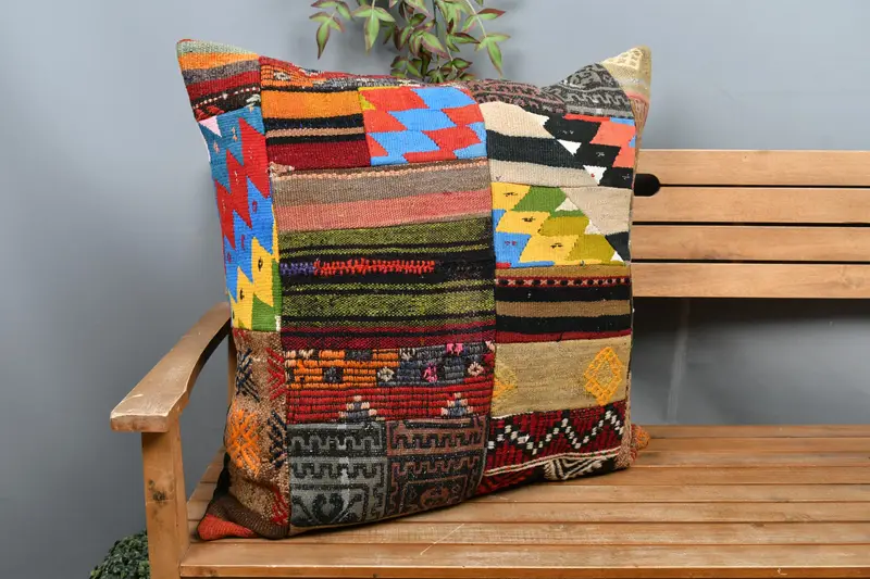 Regenbogen-Patchwork-Wurfkissen, 28x28 besticktes Kissen