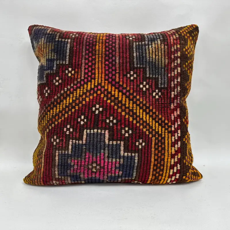 Rot & Lila besticktes Wurfkissen, 24x24 Vintage Quadratisches Kissen