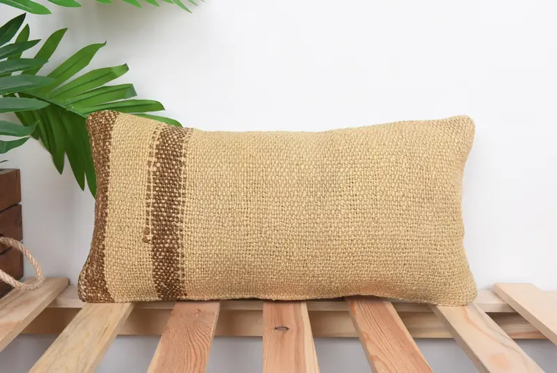 Besticktes Kissen in Beige und Braun, 16 x 8 Vintage-Wurfkissen