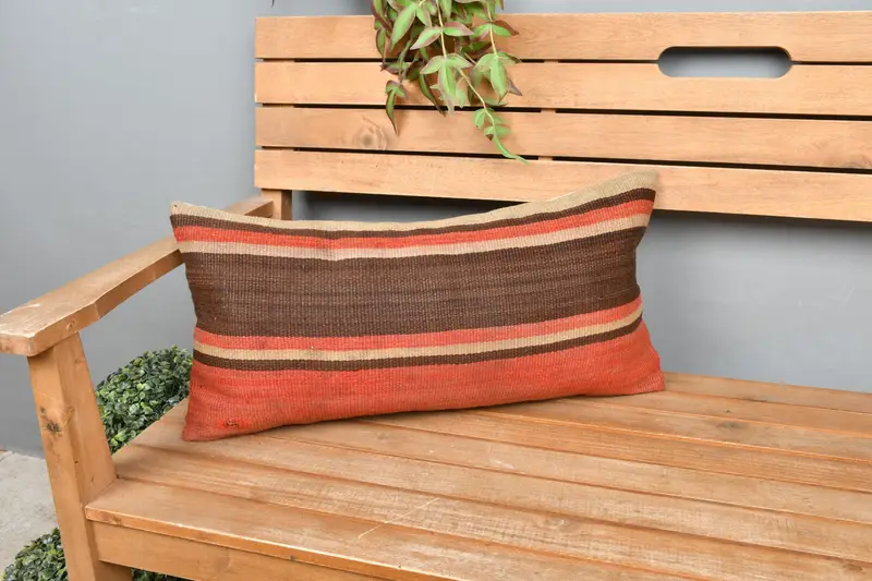 Rot-braun gestreiftes Kissen, 12x24 besticktes Wurfkissen