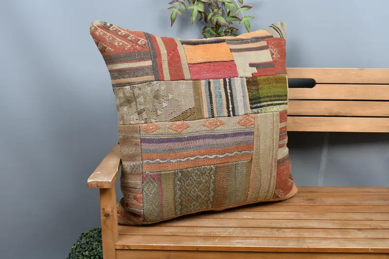 Braunes und bronzefarbenes Patchwork-Wurfkissen, 28x28 besticktes Kissen