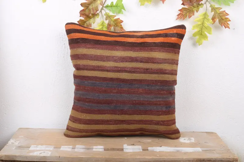 Rot & Bronze gestreiftes Kissen, besticktes Vintage-Wurfkissen