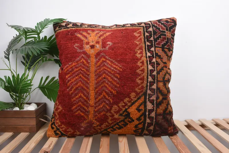 Handgefertigtes besticktes Kissen im Südwesten, Vintage-Kissen in Rot und Orange