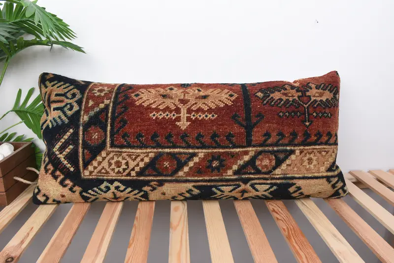 Rotes südwestlich besticktes Kissen, handgemachtes Vintage-Wurfkissen