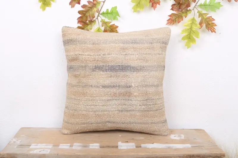Beige & Orange Patchwork Kissen, handgemachtes besticktes Kissen