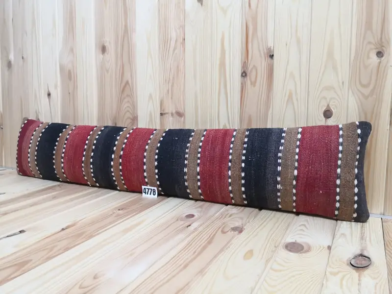 Handgefertigtes rot-braun gestreiftes Wollkissen, 8x43 Zoll großes Vintage-Rechteckkissen