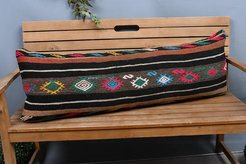 Schwarz-braun gestreiftes Kissen, Vintage besticktes Kissen
