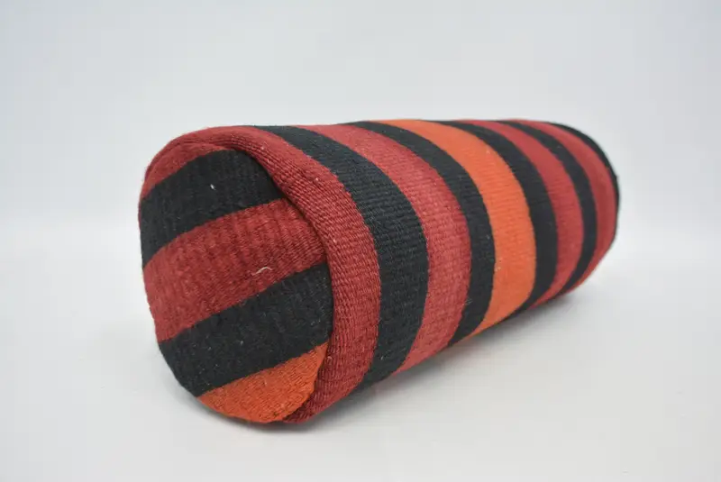 Rot und Orange gestreiftes Wurfkissen, 20x8 besticktes Vintage-Kissen