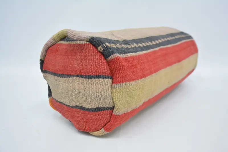 Besticktes gestreiftes Kissen, Vintage-Rechteckkissen mit Reißverschluss