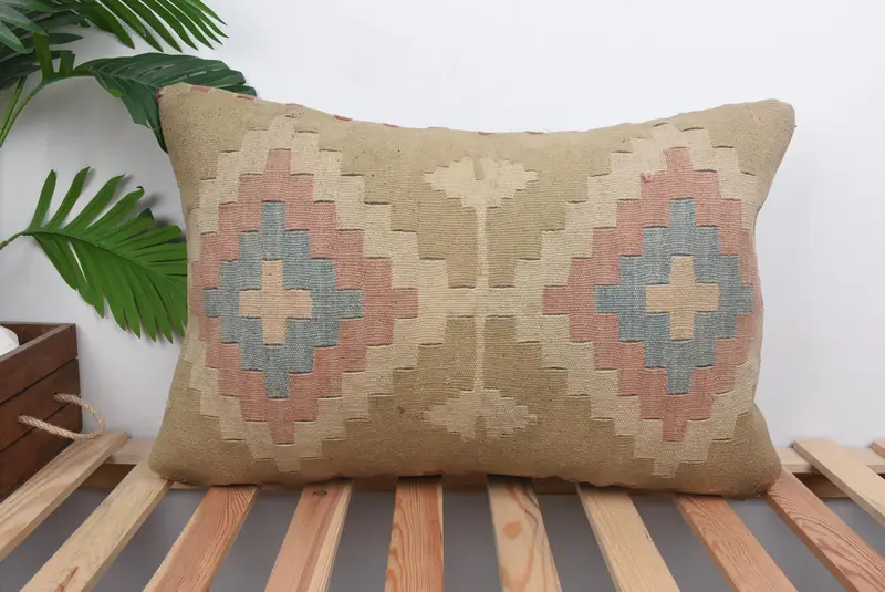 Geometrisches besticktes Kissen in Beige und Bronze, vielseitiges 16x24-Wurfkissen