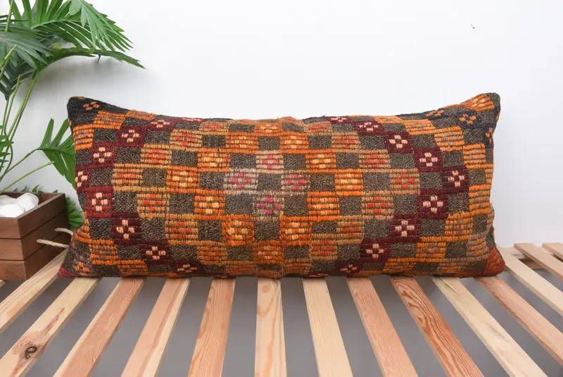 Orange & Rot Southwestern besticktes Wurfkissen, handgemachtes Vintage Kissen