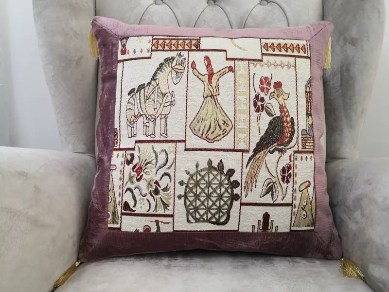 Handgefertigtes besticktes Kissen, geometrisches Vintage-Dekorkissen