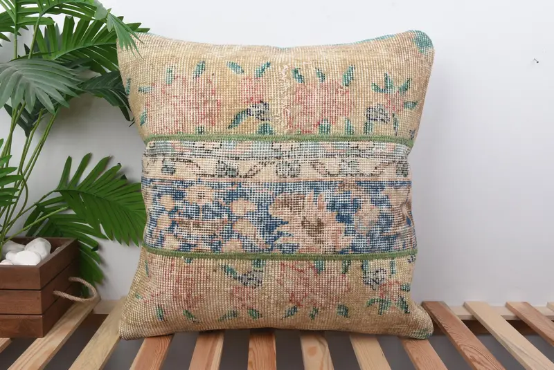 Beige, bronzefarbenes Patchwork-Wurfkissen, 22x22 besticktes Vintage-Kissen