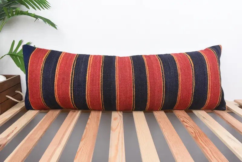 Blau & Rot gestreiftes Kissen, handgefertigtes besticktes Wurfkissen