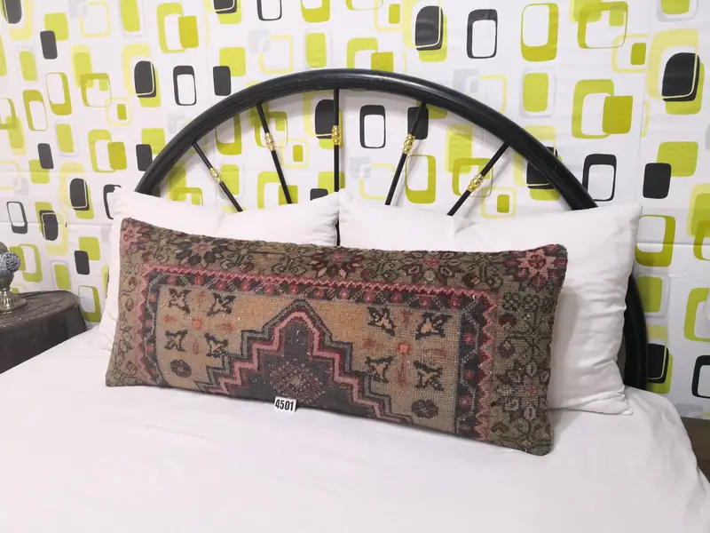Handgefertigtes besticktes Wollkissen, geometrisches Vintage-Dekor