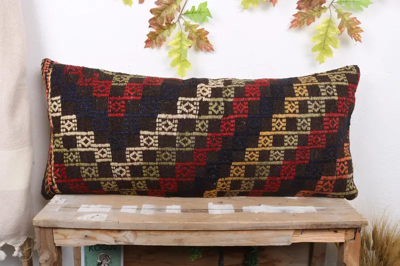 Rot & Bronze besticktes Wurfkissen, handgemachtes Vintage Kissen