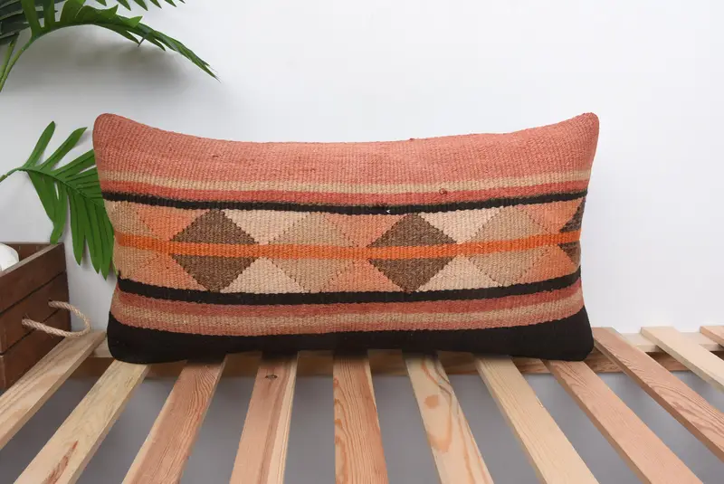 Rotes Leinen-Wurfkissen mit geometrischem Muster, handgefertigtes Vintage-Kissen