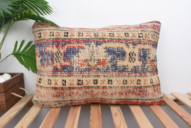 Blau & Rot besticktes Southwestern Wurfkissen, handgefertigtes Kissen