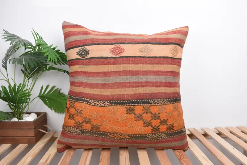 Rot & Orange gestreiftes Wurfkissen, 28x28 besticktes Leinenkissen