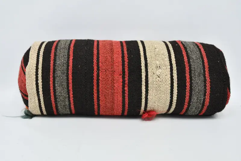 Rot-braun gestreiftes besticktes Wurfkissen, Vintage-Kissen mit Reißverschluss