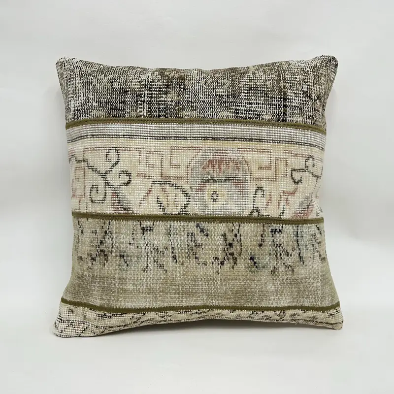 Beige & braunes Patchwork-Wurfkissen, handgefertigtes besticktes Kissen