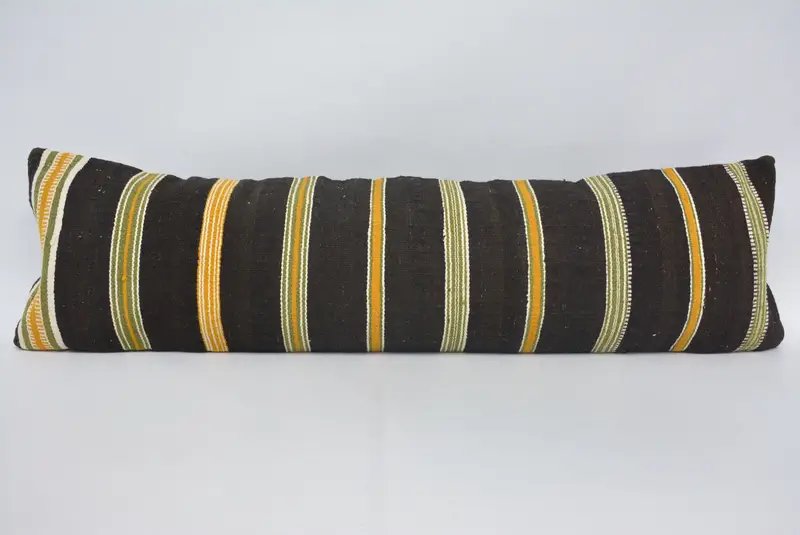 Handgefertigtes gestreiftes Kissen, 12x42 Braun- und Grünkissen