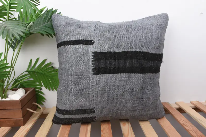 Graues und schwarzes Patchwork-Wurfkissen, handgefertigtes besticktes Kissen