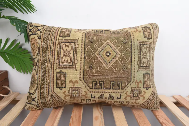 Beige & Braun besticktes Wurfkissen, südwestliches Rechteckkissen