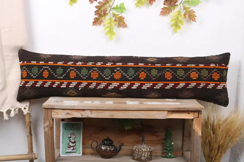 Handgefertigtes Southwestern-Wurfkissen, braun & orange besticktes Leinenkissen